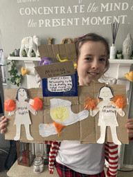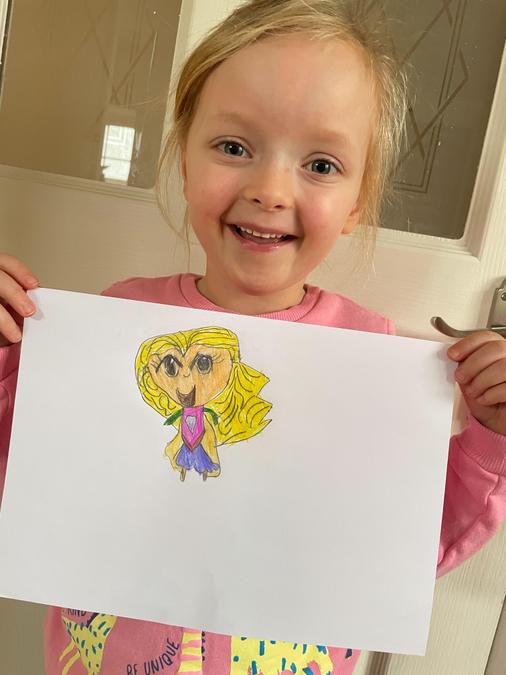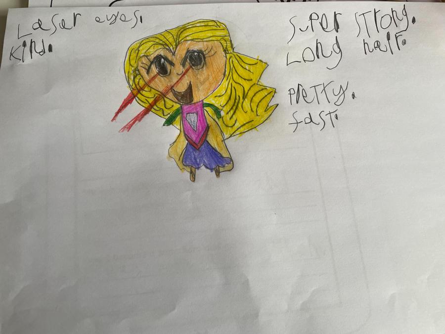 Eve in Year 1 has been really enjoying her “Superhero English” learning tasks and has been learning to draw superheroes using step by step videos at home.